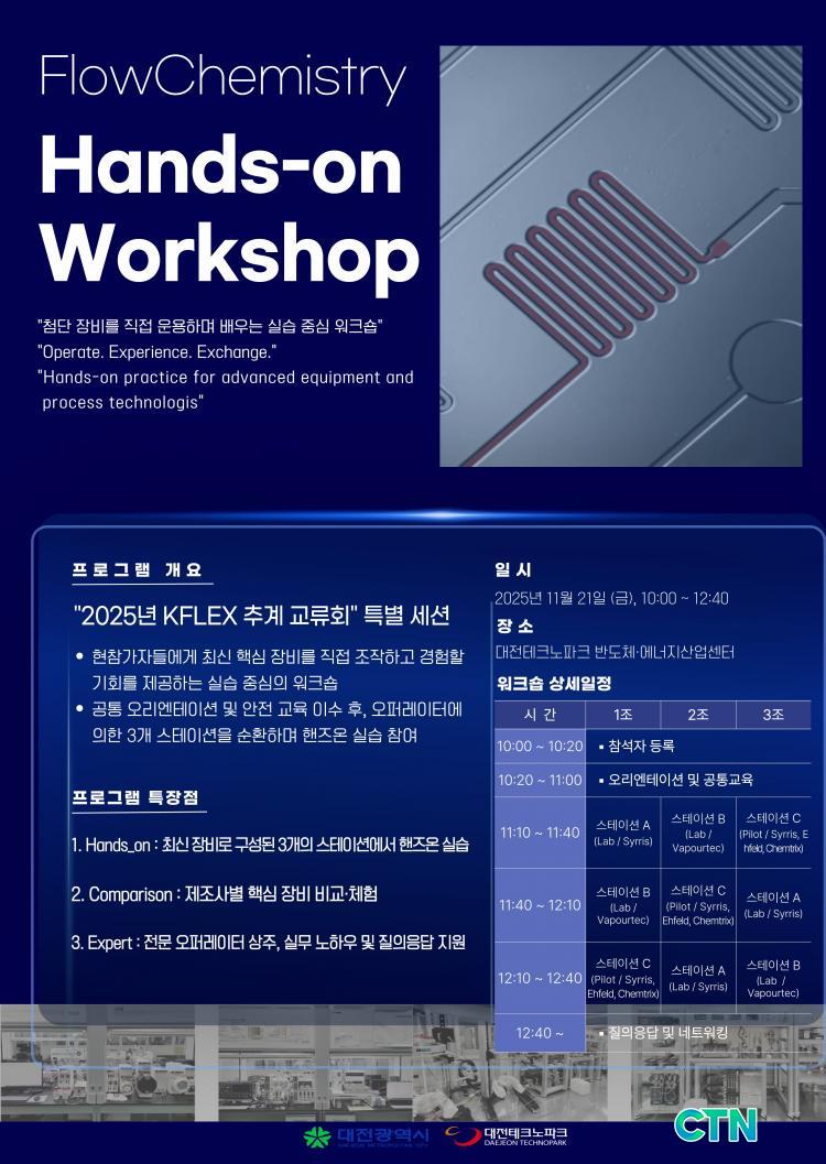 À̾î ÁøÇàµÇ´Â Ưº°¼¼¼Ç ¡®À¯µ¿ÈÇÐ ÇÚÁî¿Â ¿öÅ©¼ó(Flow Chemistry Hands-on Workshop)¡¯Àº »ê¾÷ ¼öÁØÀÇ Ã·´Ü ÈÇÐÀåºñ ȯ°æ¿¡¼ ÇÕ¼º ÇÁ·Î¼¼½º¸¦ Á÷Á¢ Á¦¾î¡¤Å½±¸ÇÏ´Â ½Ç½ÀÇü ÇÁ·Î±×·¥À¸·Î, ´ëÀüTP°¡ º¸À¯ÇÑ ¹Ì¼¼À¯Ã¼¡¤¿¬¼ÓÈ帧¹ÝÀÀ½Ã½ºÅÛ µî Àü±¹ ÃÖ°í ¼öÁØÀÇ Àåºñ ÀÎÇÁ¶ó¸¦ Ȱ¿ëÇØ ¿î¿µµÈ´Ù.