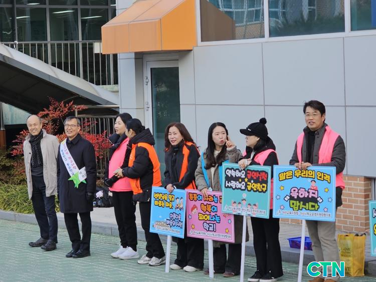 [¾Æ»ê/CTN] Á¶¼ºÂù±âÀÚ = ¾Æ»ê±³À°Áö¿øÃ»(±³À°Àå ½Å¼¼±Õ)Àº 11¿ù 19ÀÏ(¼ö) ¿ÀÀü, ¿Â¾ç¿ëȰíµîÇб³ Á¤¹® ÀÏ´ë¿¡¼ ¾Æ»ê½ÃÇб³¿î¿µÀ§¿øÀåÇùÀÇȸ ¹× ¾Æ»êÇкθðȸÇùÀÇȸ¿Í ÇÔ²² µî±·±æ ±³Åë¾ÈÀü Áöµµ ¹× Çб³Æø·Â‧±³±Çº¸È£ Ä·ÆäÀÎÀ» ÆîÃÆ´Ù.