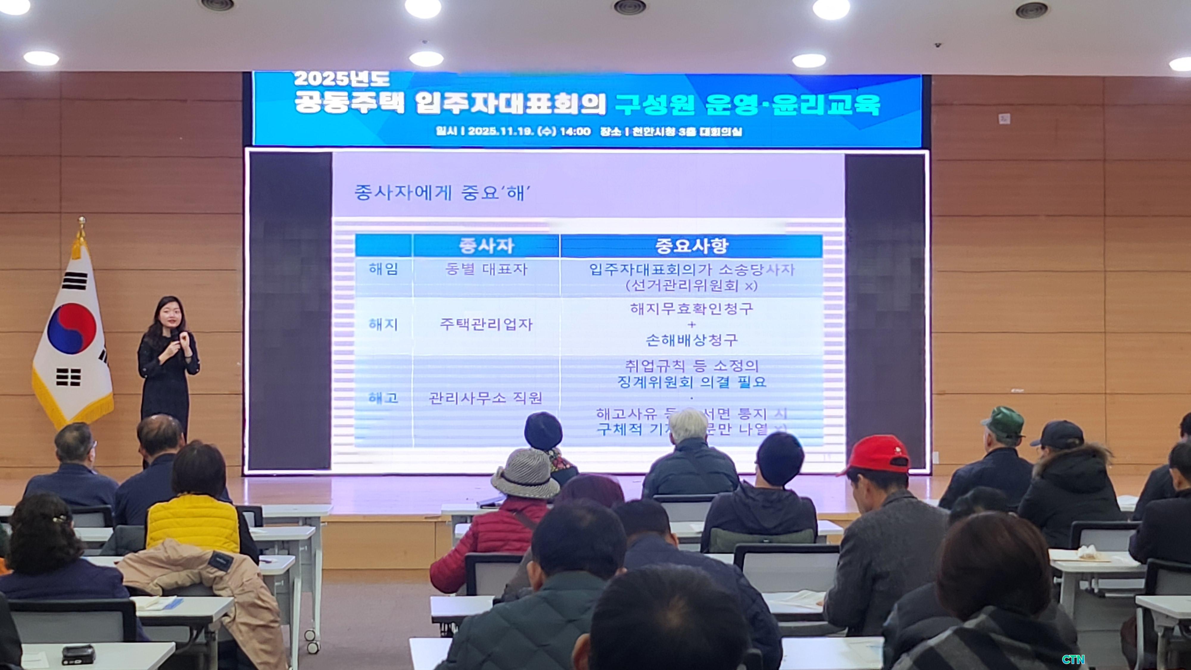 [õ¾È/CTN] °Çö¼ö ±âÀÚ = õ¾È½Ã´Â 11¿ù 19ÀÏ, °ü³» Àǹ«°ü¸®´ë»ó °øµ¿ÁÖÅà 335°³ ´ÜÁö¸¦ ´ë»óÀ¸·Î ¡®°øµ¿ÁÖÅà ÀÔÁÖÀÚ´ëǥȸÀÇ ±¸¼º¿ø ¿î¿µ ¹× À±¸®±³À°¡¯À» ½Ç½ÃÇß´Ù°í ¹àÇû´Ù.