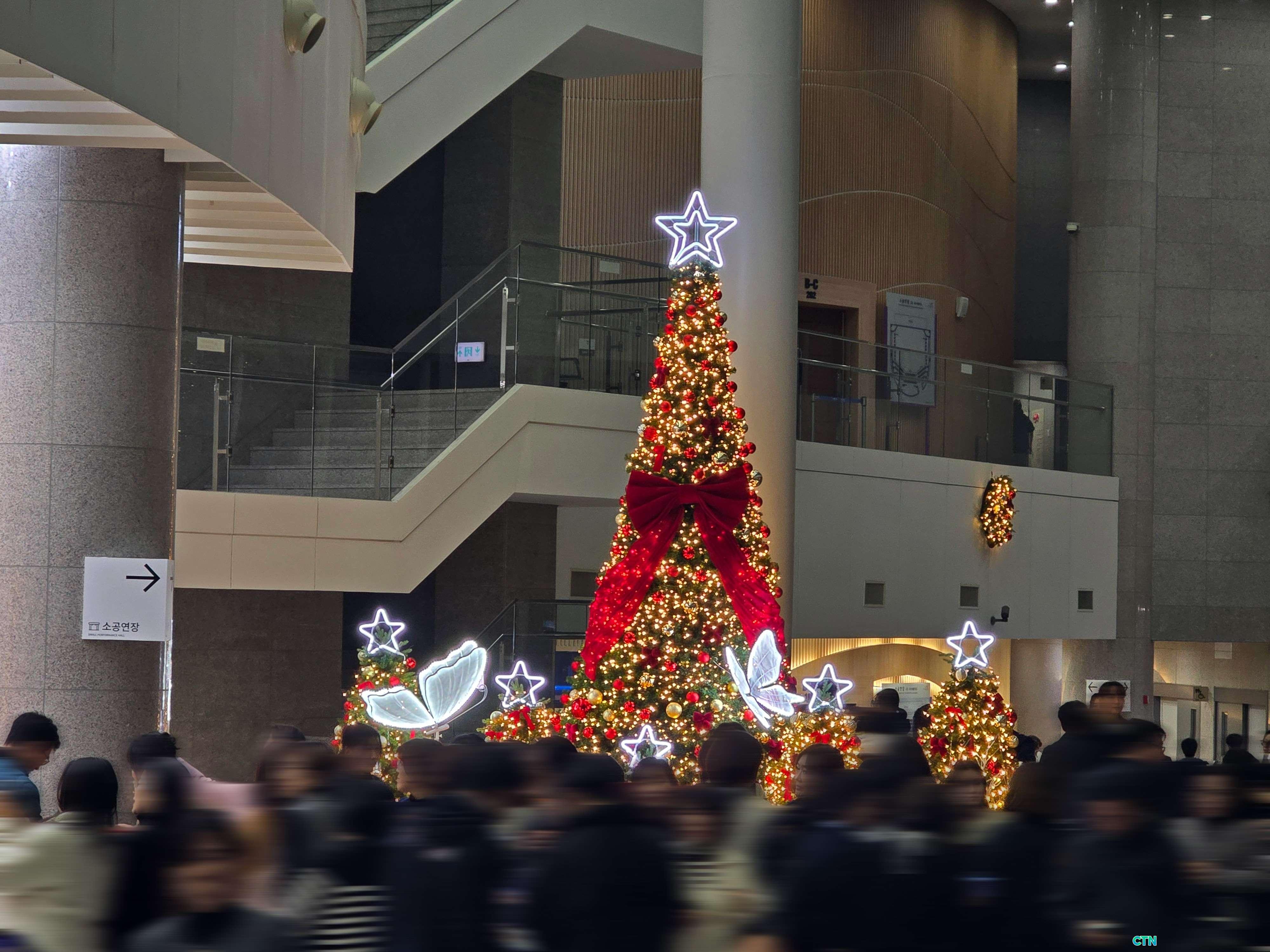[õ¾È/CTN] °Çö¼ö ±âÀÚ = õ¾È¿¹¼úÀÇÀü´çÀÌ Å©¸®½º¸¶½º¸¦ ¸Â¾Æ Áö³Çغ¸´Ù ´õ¿í Ä¿Áø 5m ±Ô¸ðÀÇ ´ëÇü Å©¸®½º¸¶½ºÆ®¸®¸¦ ¼³Ä¡Çϰí, ½Ã¹Îµé¿¡°Ô µû¶æÇÑ ¿¬¸» ºÐÀ§±â¸¦ ¼±»çÇϰí ÀÖ´Ù.