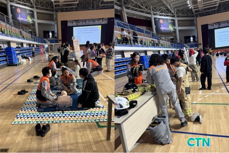 ÁÖ¿ä ±³À° ³»¿ëÀ¸·Î´Â ¡ãÈÀç ¹ß»ý ½Ã Çൿ¿ä·É ¹× 119 ½Å°í¹æ¹ý ±³À° ¡ã½ÉÆó¼Ò»ý¼ú ¹× ÀÀ±Þóġ ½Ç½À¡ãºÒÁ¶½É °Á¶ÀÇ ´Þ Æ÷½ºÅÍ ¹èºÎ¡ã¹æÈº¹, °ø±âÈ£Èí±â Âø¿ëüÇè µîÀÌ ½Ç½Ã µÆ´Ù.