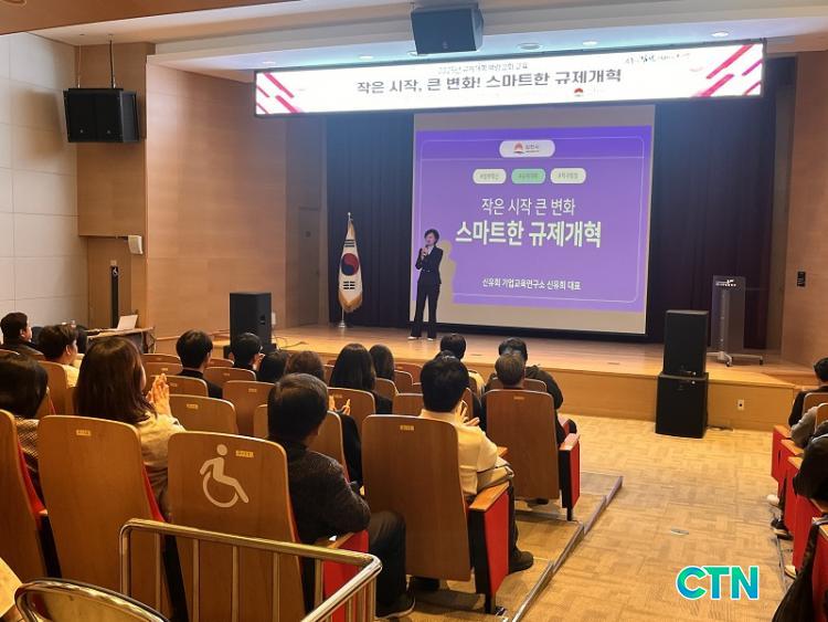 [±èõ/CTN]À̼öÇö ±âÀÚ = ±èõ½Ã(½ÃÀå ¹è³«È£)´Â 21ÀÏ ³ì»ö¹Ì·¡°úÇаü¿¡¼ °ø¹«¿øÀ» ´ë»óÀ¸·Î '±ÔÁ¦°³Çõ ¿ª·®°È ±³À°'À» ½Ç½ÃÇß´Ù.