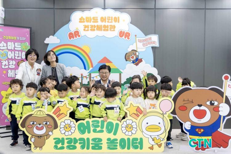ÃÖÃæ±Ô ´ë´ö±¸Ã»Àå(»çÁø µÎ ¹øÂ° ÁÙ °¡¿îµ¥)ÀÌ ´ë´ö±¸ ´ëÀüºÏºÎÁֹΰǰ¼¾ÅÍ ¡®½º¸¶Æ® ¾î¸°ÀÌ °Ç°Ã¼Çè°ü¡¯¿¡¼ Áö¿ª ¾î¸°À̵é°ú ±â³ä ÃÔ¿µÀ» Çϰí ÀÖ´Ù.¨Ï´ë´ö±¸
