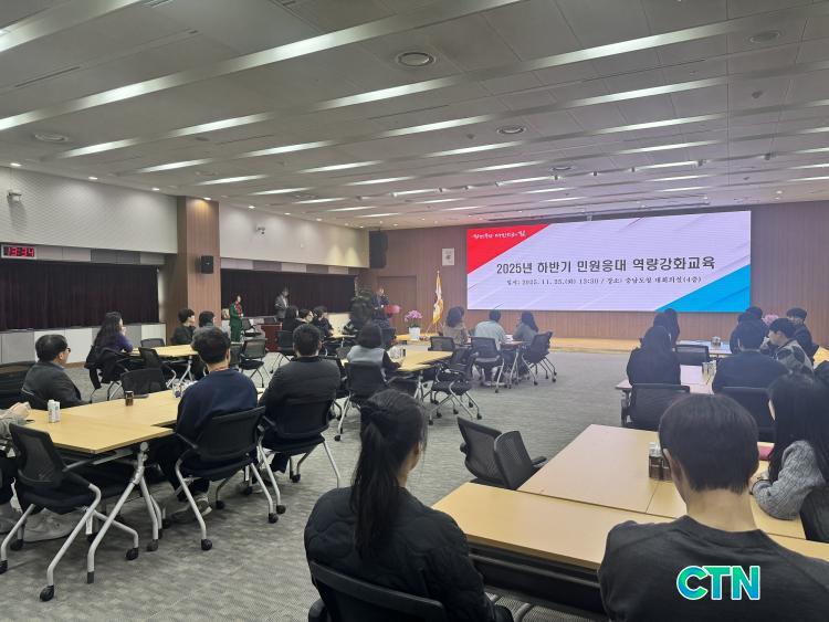 [Ãæ³²/CTN]ÇѼºÁø ±âÀÚ = Ãæ³²µµ´Â 25ÀÏ µµÃ» ´ëȸÀǽǿ¡¼ ¹Î¿ø ´ã´ç °ø¹«¿ø 50¿© ¸íÀ» ´ë»óÀ¸·Î, 'ÇϹݱ⠹οø ÀÀ´ë ¿ª·® °È ±³À°'À» ½Ç½ÃÇß´Ù.