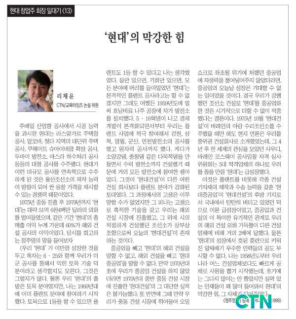 1975³â Áßµ¿ ÁøÃâ ÈÄ 1979³â±îÁö 'Çö´ë'´Â ´ë·« 51¾ï 6õ4¹é¸¸ ´Þ·¯ÀÇ ¿Üȸ¦ ¹ú¾îµé¿´À¸¸ç, °°Àº ±â°£ 'Çö´ë'ÀÇ ÃѸÅÃâ ÀÌÀÍ ´©°è °¡¿îµ¥ 60%°¡ ÇØ¿Ü °Ç¼³ °ø»çÀÇ ÀÌÀÍÀ̾ú´Ù. ´ç½Ã¸¦ ȸ°íÇÏ´Â Á¤ÁÖ¿µÀÇ ¸»À» µé¾îº¸ÀÚ