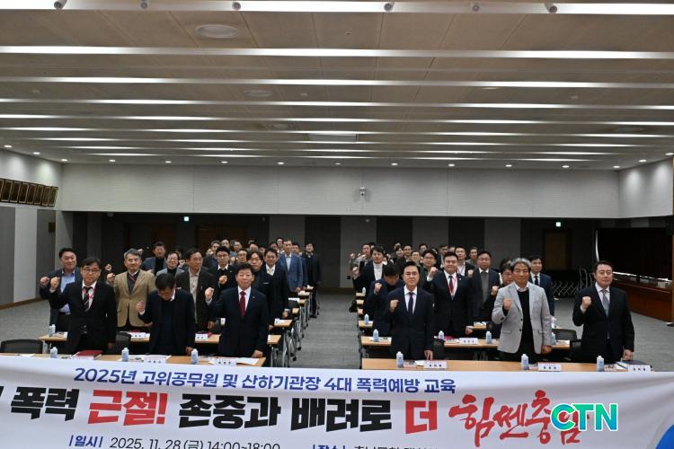 [Ãæ³²/CTN]ÇѼºÁø ±âÀÚ = Ãæ³²µµ´Â 28ÀÏ µµÃ» ´ëȸÀǽǿ¡¼ '2025³â °íÀ§ °ø¹«¿ø¡¤»êÇÏ ±â°üÀå 4´ë Æø·Â ¿¹¹æ ±³À°'À» ÁøÇàÇß´Ù.