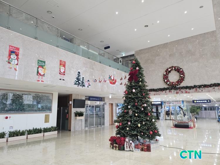 ±ºÃ»»ç Á¤¹® ÃâÀÔ±¸ ij³ëÇÇ À§ Á¶¸í Æ®¸®¿Í û»ç ³»ºÎ 5m ³ôÀÌÀÇ ´ëÇü Å©¸®½º¸¶½º Æ®¸®´Â ¹à°í È»çÇÑ ºÐÀ§±â¸¦ ¿¬ÃâÇØ ¹æ¹®°´¿¡°Ô Áñ°Å¿î ¿¬¸» °¨¼ºÀ» ¼±»çÇϰí ÀÖ´Ù.