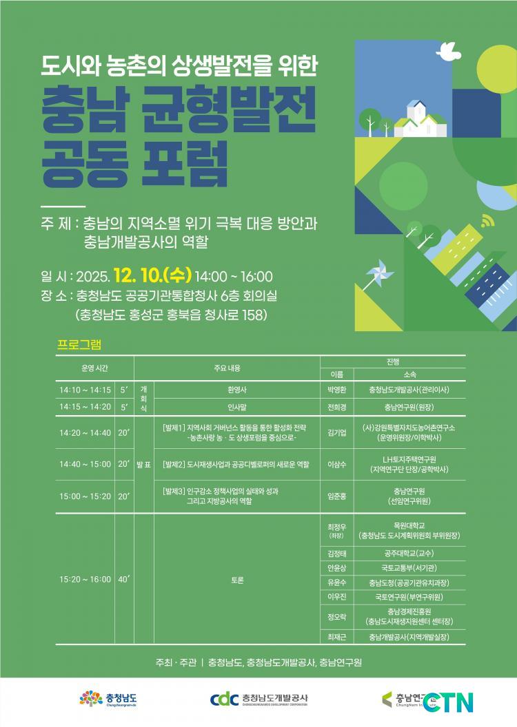 [Ãæ³²/CTN]ÇѼºÁø ±âÀÚ = Ãæ³²°³¹ß°ø»ç(»çÀå ±èº´±Ù)´Â ¿À´Â 10ÀÏ ¿ÀÈÄ2½Ã ÃæÃ»³²µµ°ø°ø±â°üÅëÇÕû»ç 6Ãþ ´ëȸÀǽǿ¡¼ ÃæÃ»³²µµ¡¤Ãæ³²¿¬±¸¿ø°ú ÇÔ²² 'µµ½Ã¿Í ³óÃÌÀÇ »ó»ý¹ßÀüÀ» À§ÇÑ Ãæ³² ±ÕÇü¹ßÀü °øµ¿Æ÷·³'À» °³ÃÖÇÑ´Ù°í ¹àÇû´Ù.