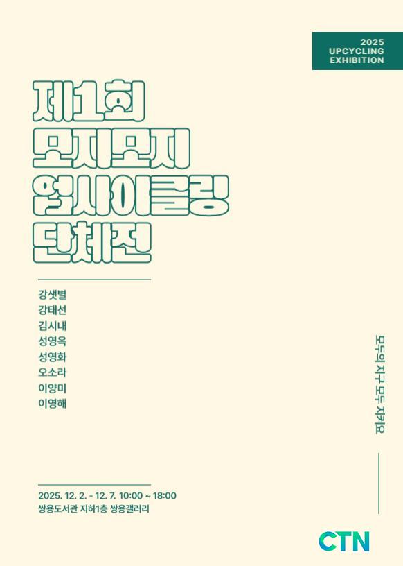 À̹ø Àü½Ã´Â °»ûº°, °Å¼±, ±è½Ã³» µî 8¸íÀÇ Âü¿©ÀÚ°¡ ¾÷»çÀÌŬ¸µÀ» ÁÖÁ¦·Î Á¦ÀÛÇÑ ÀÛǰÀ» Àü½ÃÇϸç, ÀÚ¿ø¼øÈ¯°ú Áö¼Ó °¡´ÉÇÑ »ýȰ¹®È¸¦ ½Ã¹Îµé°ú °øÀ¯ÇÏ´Â °ÍÀ» ¸ñÇ¥·Î ÇÑ´Ù. ¸ðÀÓÀº ÀÚÅõ¸® ¿ø´Ü, Æó¼¶À¯ µî ¹ö·ÁÁö´Â ¼ÒÀç¿¡ »õ·Î¿î °¡Ä¡¸¦ ´õÇϴ âÀÛ È°µ¿À» ±â¹ÝÀ¸·Î, Àϻ󿡼 ½Çõ °¡´ÉÇÑ È¯°æº¸È£ ¹æ¹ýÀ» ½Ã¹Îµé¿¡°Ô ¼Ò°³ÇؿԴÙ. ¾Æ¿ï·¯ ź¼ÒÁ߸³ ¹× ÀÚ¿ø¼øÈ¯ ±³À° ÇÁ·Î±×·¥À» ¿î¿µÇϸç Áö¿ª ȯ°æ±³À° Ȱ¼ºÈ¿¡µµ ±â¿©Çϰí ÀÖ´Ù.