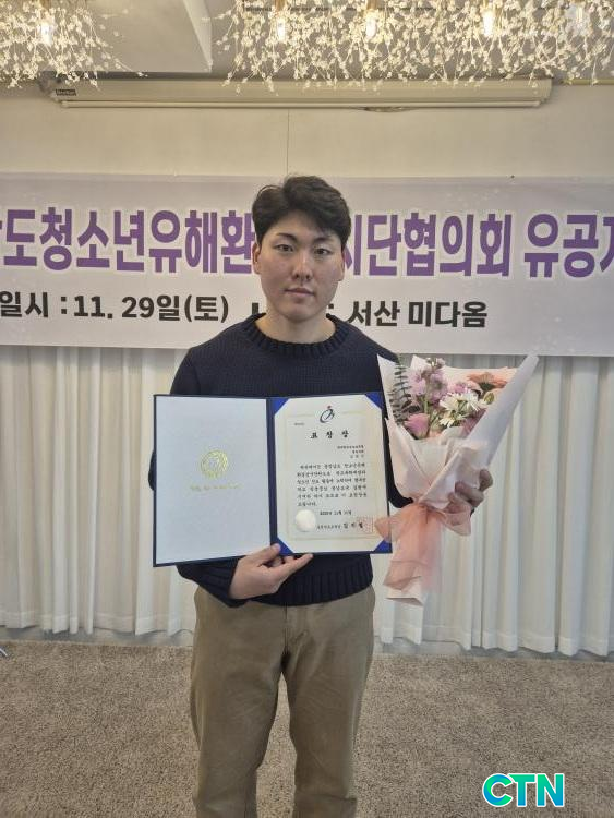 [õ¾È/CTN]°Çö¼ö ±âÀÚ = Çѱ¹Ã»¼Ò³âº¸È£¿¬¸Í õ¾ÈÁöȸ(õ¾È½Ã û¼Ò³âÀ¯ÇØÈ¯°æ°¨½Ã´Ü) ¼Ò¼Ó ±èÇö¹Î ¼±µµÀ§¿øÀÌ Áö³ 11¿ù 29ÀÏ Ãæ³² ¼»ê½Ã ¹Ì´Ù¿ò¿¡¼ ¿¸° ¡®ÃæÃ»³²µµÃ»¼Ò³âÀ¯ÇØÈ¯°æ°¨½Ã´ÜÇùÀÇȸ Ä·ÆäÀÎ ¹× À¯°øÀÚ Ç¥Ã¢¡¯ ¼ö¿©½Ä¿¡¼ û¼Ò³â ¼±µµ º¸È£ ¹× °ÇÀü À°¼º¿¡ ±â¿©ÇÑ °ø·Î¸¦ ÀÎÁ¤¹Þ¾Æ ÃæÃ»³²µµ±³À°°¨»óÀ» ¼ö»óÇß´Ù.