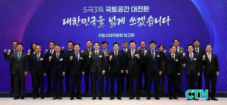 À̳¯ º¸°íȸ´Â ¡®5±Ø 3Ư ±¹Åä°ø°£ ´ëÀüȯ, ´ëÇѹα¹À» ³Ð°Ô ¾²°Ú½À´Ï´Ù¡¯¶ó´Â ÁÖÁ¦·Î ±è°æ¼ö Áö¹æ½Ã´ëÀ§¿øÀåÀÇ º¸°í¿Í ÀÌÀç¸í ´ëÅë·ÉÀÇ ÁÖÀç·Î ÁøÇàµÆÀ¸¸ç, ±¹°¡ ±ÕÇü ¹ßÀüÀÇ »õ·Î¿î ÆÐ·¯´ÙÀÓÀ» ¸ð»öÇÏ´Â ÀÚ¸®¿´´Ù.