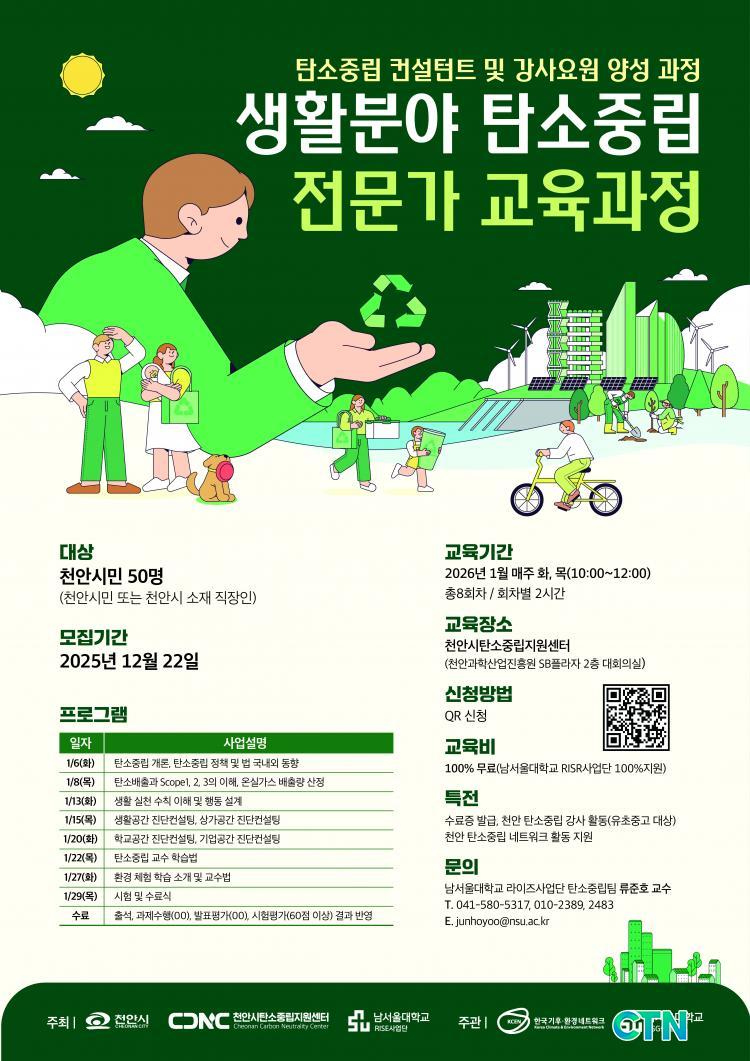 õ¾È½Ã ź¼ÒÁ߸³Áö¿ø¼¾ÅÍ´Â ³»³â 1¿ù 6ÀϺÎÅÍ 29ÀϱîÁö õ¾ÈSBÇöóÀÚ¿¡¼ **'»ýȰºÐ¾ß ź¼ÒÁ߸³ Àü¹®°¡ ±³À°°úÁ¤'**À» ¿î¿µÇÑ´Ù°í 9ÀÏ ¹àÇû´Ù. À̹ø ±³À°Àº ź¼ÒÁ߸³ ÄÁ¼³ÅÏÆ® ¹× °»ç¸¦ ¾ç¼ºÇØ Áö¿ª ³» ±³À° ±â¹ÝÀ» °ÈÇÏ´Â µ¥ ¸ñÀûÀÌ ÀÖ´Ù.