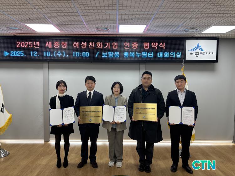 [¼¼Á¾/CTN]Á¤¹ÎÁØ ±âÀÚ¤Ó¼¼Á¾Æ¯º°ÀÚÄ¡½Ã°¡ 10ÀÏ º¸¶÷µ¿ Çູ´©¸²ÅÍ ´ëȸÀǽǿ¡¼ ¡®2025³â ¼¼Á¾Çü ¿©¼ºÄ£È±â¾÷¡¯ ÀÎÁõ Çù¾à½ÄÀ» °³ÃÖÇß´Ù.