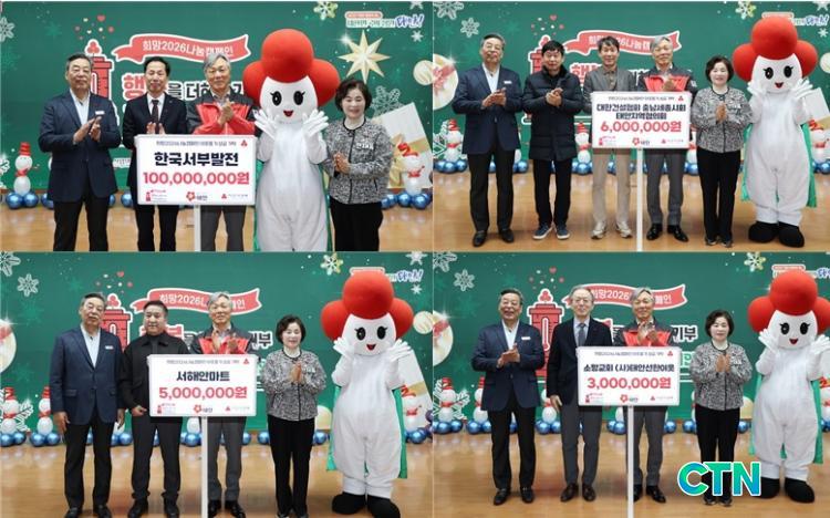 Çѱ¹¼ºÎ¹ßÀü(»çÀå ÀÌÁ¤º¹)ÀÌ 1¾ï ¿øÀÇ ¼º±ÝÀ» ÄèôÇÏ°í ´ëÇѰǼ³Çùȸ Ãæ³²¼¼Á¾½Ãȸ žÈÁö¿ªÇùÀÇȸ(ȸÀå ¹Ú·¡Ã¢, ´ëÇ¥ÀÌ»ç ±èõȣ)°¡ 600¸¸ ¿øÀ» ±âŹÇßÀ¸¸ç, ¼Çؾȸ¶Æ®(´ëÇ¥ ±è°æÈ£)µµ À̳¯ 500¸¸ ¿øÀÇ ¼º±ÝÀ» Àü´ÞÇß´Ù.