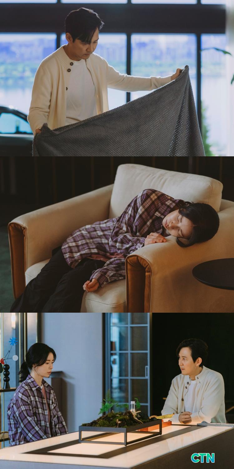 À̾îÁø »çÁø ¼Ó ÀÓÇöÁذú À§Á¤½Å »çÀÌ È帣´Â ¹Ì¹¦ÇÑ ºÐÀ§±âµµ Æ÷ÂøµÆ´Ù. ¡®¸á·ÎÀåÀΡ¯¿¡°Ô Áø½ÉÀ¸·Î ´Ù°¡°¬´ø ¸¸Å Å« Ãæ°Ý¿¡ ºüÁ® Â÷°©°Ô ±»Àº À§Á¤½Å, ÀÓÇöÁØÀº ±×ÀÇ ´«Ä¡¸¦ »ìÇÇ´À¶ó ¹Ù»Û µí º¸ÀδÙ. µÎ »ç¶÷ »çÀÌ ¿À°í °¥ ´ëÈÀÇ ³»¿ëÀÌ ±Ã±ÝÇØÁö´Â °¡¿îµ¥ ¾Õ¼± ¿¹°í ¿µ»ó¿¡¼ ¡°ÀÌ·¸°Ô±îÁö ¹Ùº¸°¡ µÈ ±âºÐÀÌ Ã³À½ÀÌ¿¡¿ä"¶ó¸ç Ãæ°Ý°ú ÇãÅ»ÇÔÀ» °¨ÃßÁö ¸øÇÏ´Â À§Á¤½ÅÀÇ ¸ð½ÀÀÌ °ø°³µÈ ¹Ù ÀÖ¾î, »ß±×´ö°Å¸®´Â ÀÓÇöÁذú À§Á¤½ÅÀÇ °ü°è Çâ¹æ¿¡ À̸ñÀÌ ÁýÁߵȴÙ.