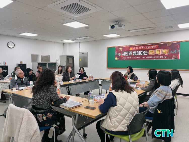 [õ¾È/CTN]°Çö¼ö ±âÀÚ = õ¾È½Ã ¾Æ¿ì³»µµ¼°üÀÌ ½Ã¹Îµé°ú Á÷Á¢ ¸¶ÁÖ ¾É¾Æ Áö¿ª µ¶¼ ¹®ÈÀÇ ¹Ì·¡¸¦ ¼³°èÇÏ´Â ¼ÒÅëÀÇ ÀåÀ» ¸¶·ÃÇß´Ù. µµ¼°üÀº ´Ü¼øÇÑ µµ¼ ´ëÃâ °ø°£À» ³Ñ¾î ¼¼´ëº° ¸ÂÃãÇü ÇÁ·Î±×·¥À» ÅëÇØ Áö¿ª °øµ¿Ã¼ÀÇ ¿Â±â¸¦ ³ª´©´Â ¹®È °ÅÁ¡À¸·Î ÁøÈÇϰí ÀÖ´Ù.