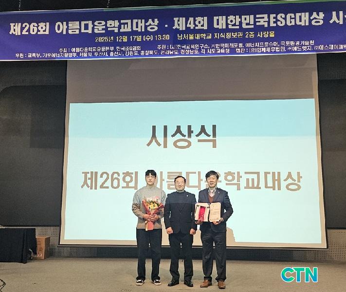 [±³À°/CTN]À̱ⱹ ±âÀÚ = ÁõÆò°ø¾÷°íµîÇб³(±³Àå À̺´È£)´Â 17ÀÏ Ãµ¾È ³²¼¿ï´ëÇб³¿¡¼ ¿¸° 'Á¦26ȸ ¾Æ¸§´Ù¿îÇб³´ë»ó' ½Ã»ó½Ä¿¡¼ 'ÃÖ¿ì¼ö»ó'À» ¼ö»óÇÏ´Â ¿µ¿¹¸¦ ¾È¾Ò´Ù.