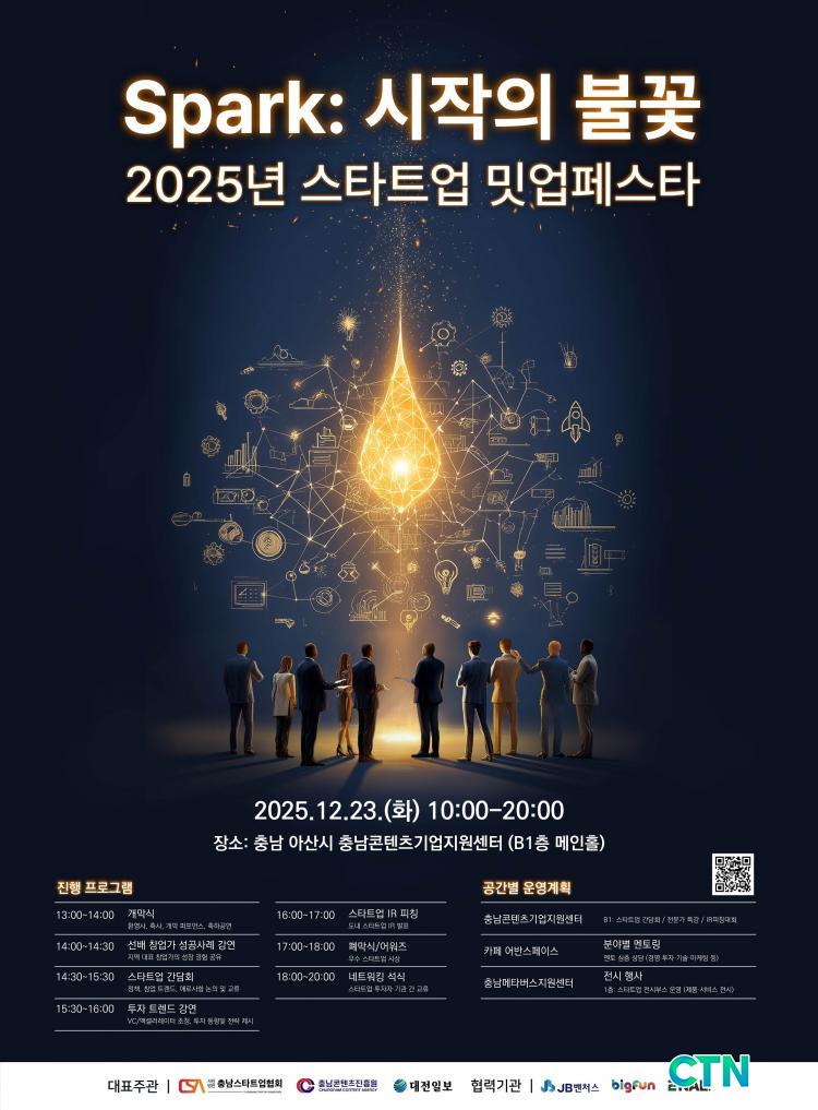 [Ãæ³²/CTN]ÇѼºÁø ±âÀÚ = Ãæ³²µµ´Â ¿À´Â 23ÀÏ ¾Æ»ê Ãæ³²ÄÜÅÙÃ÷±â¾÷Áö¿ø¼¾ÅÍ¿¡¼ '2025³â ½ºÅ¸Æ®¾÷ ¹Ô¾÷ Æä½ºÅ¸(Startups, Opening the Future)'¸¦ °³ÃÖÇÑ´Ù°í 18ÀÏ ¹àÇû´Ù.