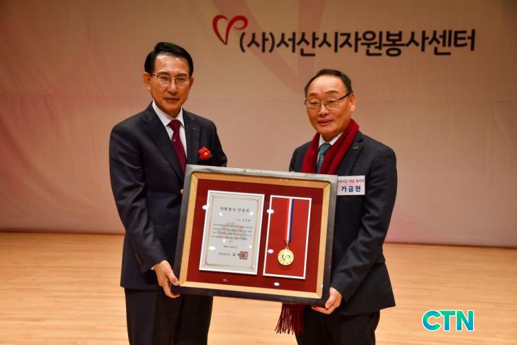 °¡±ÝÇö ´ëÇ¥ÀÌ»ç´Â ÀÚ¿øºÀ»ç 1¸¸ ½Ã°£ ÀÌ»óÀ» ½ÇõÇÑ °ø·Î·Î ÃæÃ»³²µµÁö»ç·ÎºÎÅÍ ÀÎÁõÆÐ¸¦ ¼ö»óÇß´Ù. ½Ã»óÀº ¼»ê½ÃÀÚ¿øºÀ»çÀÚÀÇ ³¯ Çà»ç½Ã À̿ϼ· ¼»ê½ÃÀåÀÌ ¼ö¿©Çß´Ù.(°¡±ÝÇö ´ëÇ¥ »çÁø ¿ì)/CTN¹Ú¼øÁø ±âÀÚ