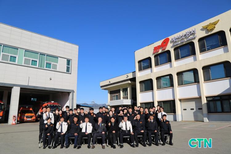 À̳¯ ÅðÀӽĿ¡´Â ¼Ò¹æ¼ Á÷¿øµéÀÌ Âü¼®ÇØ Àü¿µ¼ö ¼Ò¹æ¼ÀåÀÇ ÅðÀÓÀ» ÃàÇÏÇÏ¸ç ±×µ¿¾È ÃæÃ»³²µµ Àüü ¼Ò¹æ¹ßÀü°ú µµ¹ÎÀÇ ¾ÈÀüÀ» À§ÇØ Çå½ÅÇØ ¿Â Àü¿µ¼ö ¼ÀåÀÇ ³ë°í¿¡ °¨»çÀÇ ¶æÀ» ÀüÇß´Ù.
