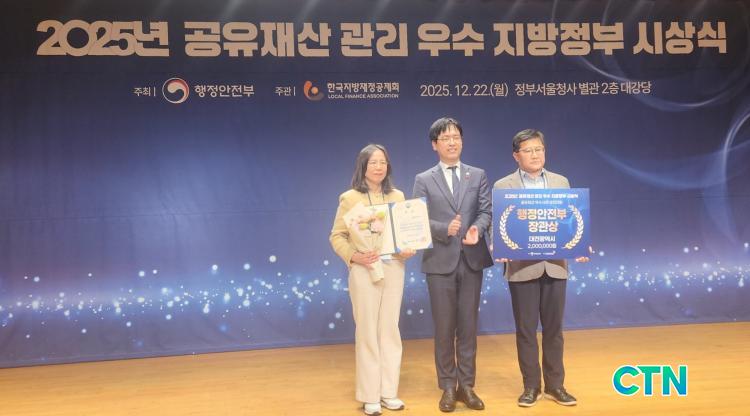 [´ëÀü/CTN]Á¤¹ÎÁØ ±âÀÚ¤Ó´ëÀü½Ã´Â ÇàÁ¤¾ÈÀüºÎ ÁÖ°ü¡®2025³â °øÀ¯Àç»ê ¿ì¼ö ÁöÀÚü ½Ã»ó½Ä¡¯¿¡¼ ¡¸¿ì¼ö»ç·Ê °æÁø´ëȸ ºÎ¹®¡¹ÇàÁ¤¾ÈÀüºÎ Àå°ü ±â°üǥâÀ» ¼ö»óÇß´Ù.