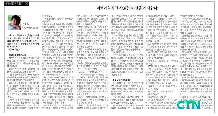 ±× ±î´ßÀº °ð ¹àÇôÁ³´Ù. Çѵ¿¾È Áß±¹ÀÇ ¿ª»ç³ª Áß±¹ÀÎÀÇ ¼º°Ý, Áß±¹ ½ÃÀåÀÇ Æ¯¼º µî¿¡ ´ëÇØ¼ À̾߱⸦ ÇÏ´ø ±×µéÀº °ð Áß±¹ ½ÃÀå ÁøÃâÀÇ ¾î·Á¿òÀ» ÀÌ¹Ì °ÞÀº ½ÇÆÐ´ã°ú ÇÔ²² Åä·ÎÇϱ⠽ÃÀÛÇß´Ù. ¿¹ÄÁ´ë Áß±¹ ½ÃÀåÀ» ¶ÕÀ» ¸¸ÇÑ ÁÁÀº ¾ÆÀ̵ð¾î°¡ ¾ø°Ú´À³Ä´Â °ÍÀÌ ¹Ù·Î ±×µéÀÌ Á¤ÁÖ¿µ ȸÀå°ú ¿ì¸®¸¦ ±× ¹æÀ¸·Î ºÒ·¯µéÀÎ ÀÌÀ¯¿´´ø °ÍÀÌ´Ù.