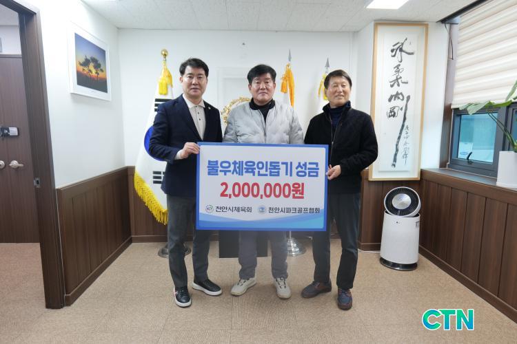 [õ¾È/CTN]°Çö¼ö ±âÀÚ = õ¾È½ÃÆÄÅ©°ñÇÁÇùȸ°¡ °æÁ¦Àû ¾î·Á¿ò ¼Ó¿¡¼µµ ²ÞÀ» Æ÷±âÇÏÁö ¾Ê´Â Áö¿ª üÀ°ÀεéÀ» À§ÇØ µû¶æÇÑ ¼Õ±æÀ» ³»¹Ð¾ú´Ù. õ¾È½ÃüÀ°È¸´Â Áö³ 23ÀÏ Ãµ¾È½ÃÆÄÅ©°ñÇÁÇùȸ°¡ ÈÆ·Ã°ú »ýȰ¿¡ ºÎ´ãÀ» °Þ´Â ºÒ¿ìüÀ°ÀÎÀ» µ½±â À§ÇÑ ÈÄ¿ø±Ý 200¸¸ ¿øÀ» ±âŹÇß´Ù°í ¹àÇû´Ù.