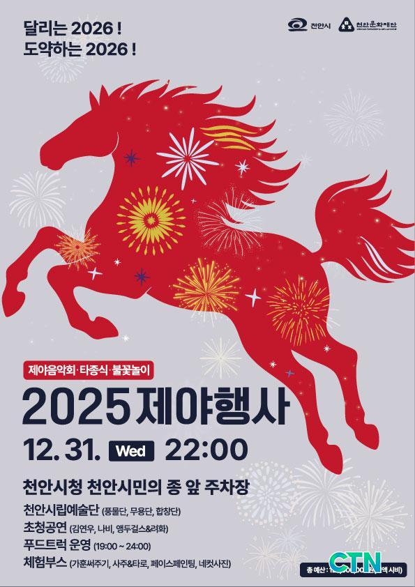 [õ¾È/CTN]°Çö¼ö ±âÀÚ = õ¾È½Ã°¡ ¿À´Â 31ÀÏ, 8³â ¸¸¿¡ ½Ã¹ÎµéÀÇ Ç°À¸·Î µ¹¾Æ¿Â ¡®Ãµ¾È½Ã¹ÎÀÇ Á¾¡¯°ú ÇÔ²² º´¿À³â(ܰçíÒ´) ºÓÀº ¸»ÀÇ ÇØ¸¦ ¸ÂÀÌÇÏ´Â È·ÁÇÑ Á¦¾ßÇà»ç¸¦ ¿¬´Ù. ½Ã´Â ¿À´Â 31ÀÏ Ãµ¾È½Ã¹ÎÀÇ Á¾ ÀÏ¿ø¿¡¼ ¡®´Þ¸®´Â 2026! µµ¾àÇÏ´Â 2026! 2025 Á¦¾ßÇà»ç¡¯¸¦ °³ÃÖÇÑ´Ù°í 24ÀÏ ¹àÇû´Ù.