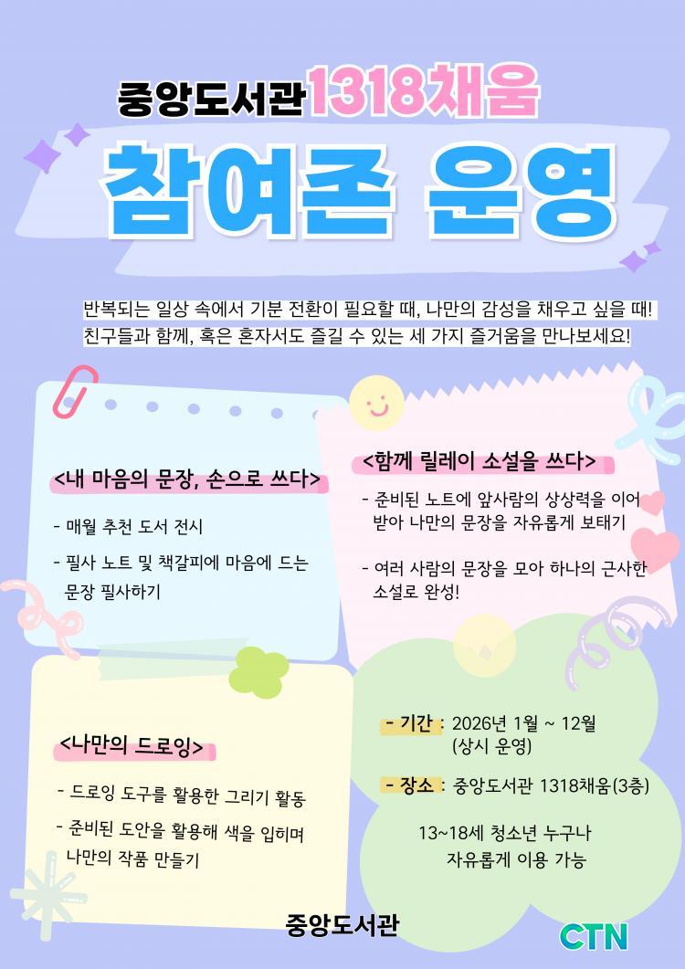 #õ¾È½Ã #Áß¾Óµµ¼°ü #1318ä¿ò #û¼Ò³â³îÀÌÅÍ #°Ü¿ï¹æÇпøµ¥ÀÌŬ·¡½º #½´¸²ÇÁŸÆÄ½º #û¼Ò³âÀü¿ë°ø°£ #õ¾Èû¼Ò³â #µ¶¼Èï¹Ì #°Çö¼ö±âÀÚ #CTN
