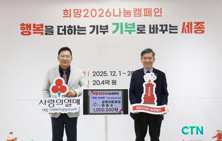 ÀÌÀº¼ö ¼¼Á¾½Ãû ±³À°Áö¿ø°úÀåÀÌ ÇåÇ÷ 100ȸ ´Þ¼º ±â³äÀ¸·Î Èñ¸Á2026³ª´®Ä·ÆäÀÎ Èñ¸Á¼º±Ý 100¸¸¿øÀ» ±âŹÇß´Ù. ¨Ï¼¼Á¾»ç¶ûÀÇ¿¸Å
