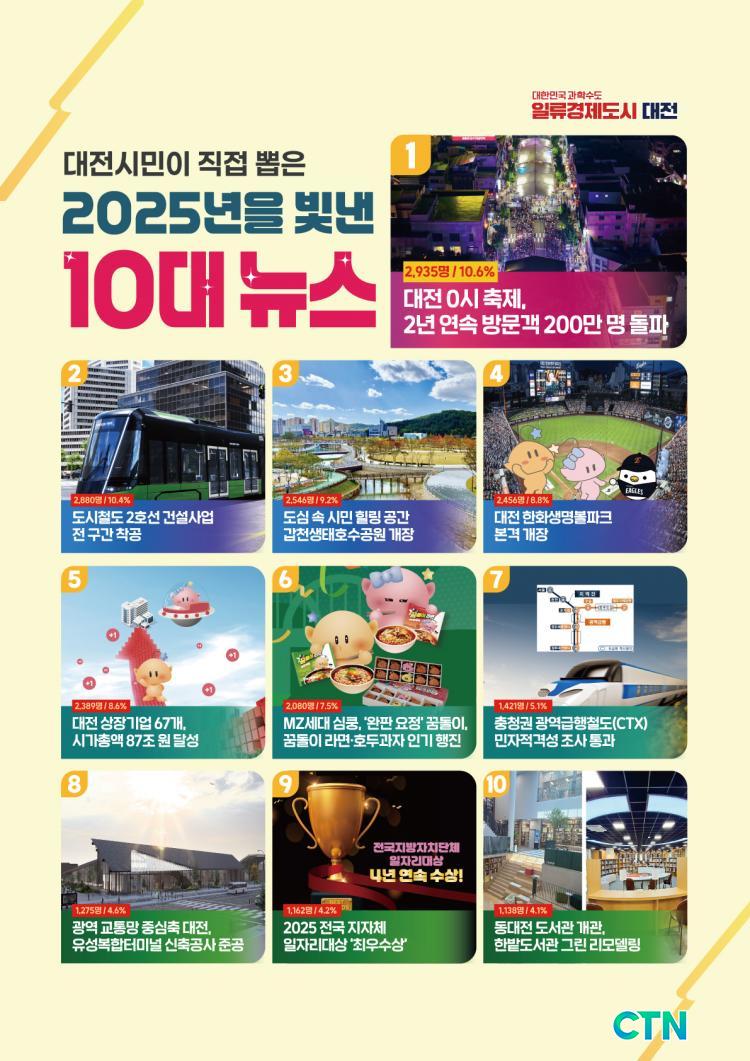 [´ëÀü/CTN]Á¤¹ÎÁØ ±âÀÚ¤Ó´ëÀü ½Ã¹ÎµéÀº 2025³â ´ëÀü½ÃÁ¤ ´º½º Áß ¡®´ëÀü 0½Ã ÃàÁ¦ 2³â ¿¬¼Ó ¹æ¹®°´ 200¸¸ ¸í µ¹ÆÄ¡¯¸¦ ÃÖ°íÀÇ ´º½º·Î »Ì¾Ò´Ù.