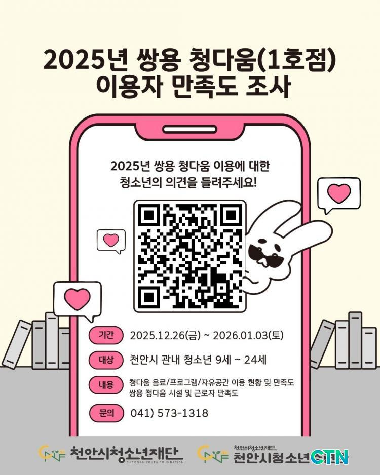 [õ¾È/CTN]°Çö¼ö ±âÀÚ = õ¾È½Ãû¼Ò³âÀç´Ü õ¾È½Ãû¼Ò³â¼ö·Ã°ü »êÇÏÀÇ Ã»¼Ò³âÀÚÀ¯°ø°£ 'û´Ù¿ò'ÀÌ °ø°£ÀÇ ½ÇÁ¦ ÁÖÀÎÀΠû¼Ò³âµéÀÇ ÀǰßÀ» Á÷Á¢ µè°í ¿î¿µ¿¡ ¹Ý¿µÇϱâ À§ÇØ ³ª¼¹½À´Ï´Ù. û´Ù¿ò ½Ö¿ë¡¤¹®È¡¤Ã»´çÁ¡Àº Áö³ 12¿ù 26ÀϺÎÅÍ ÀÌ¿ë û¼Ò³âµéÀ» ´ë»óÀ¸·Î 2025³â ÀÌ¿ëÀÚ ¸¸Á·µµ Á¶»ç¸¦ º»°ÝÀûÀ¸·Î ½ÃÀÛÇß´Ù°í ¹àÇû½À´Ï´Ù.