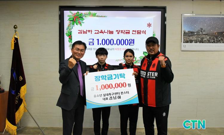 À¯¼Ò³âÃ౸±³½Ç¡¸¸ó½ºÅÍ FC¡¹¸¦ ¿î¿µÇϰí ÀÖ´Â ±è³²ÇÏ ´ëÇ¥´Â ±×µ¿¾È ¼Ò¿Ü°èÃþÀ» µ½±â À§ÇØ ²ÙÁØÈ÷ ±â±ÝÀ» Á¶¼ºÇØ ¿ÔÀ¸¸ç, 2025³â¿¡´Â ¿ì¸® Áö¿ª ÇлýµéÀÇ ¹è¿ò°ú ¼ºÀåÀ» Áö¿øÇϱâ À§ÇØ ¼»ê±³À°Áö¿øÃ»¿¡ ÀåÇÐ±Ý ±âŹ Àǻ縦 ÀüÇß°í, ¼»ê±³À°Áö¿øÃ»Àº ±è ´ëÇ¥ÀÇ ¼±ÀÇ¿¡ °¨»ç¸¦ Ç¥ÇÏ¸ç ±âŹ½ÄÀ» ¿¿´´Ù. ¿À´Ã ±âʹÞÀº ÀåÇбÝÀº °ü³» °¢±ÞÇб³ ÀçÇлý Áß ¼±Á¤µÈ Çлýµé¿¡°Ô Àü´ÞµÉ ¿¹Á¤ÀÌ´Ù.