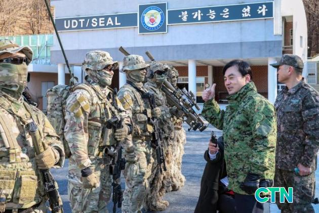 ¾È±Ô¹é ±¹¹æºÎÀå°üÀº 12¿ù 26ÀÏ, ÇØ±ºÀÇ ÃÖÁ¤¿¹ ºÎ´ëÀÎ UDT/SEAL°ú SSU ºÎ´ë¸¦ ºñ·ÔÇÑ, Àá¼öÇÔ»ç·ÉºÎ ¹× ÇØº´´ë 1»ç´Ü¡¤±³À°ÈƷôÜÀ» ã¾Æ ÀÛÀüż¼¸¦ Á¡°ËÇϰí, ÀÓ¹«¼öÇà¿¡ ¸ÅÁøÇϰí ÀÖ´Â À庴µéÀ» °Ý·ÁÇß´Ù.