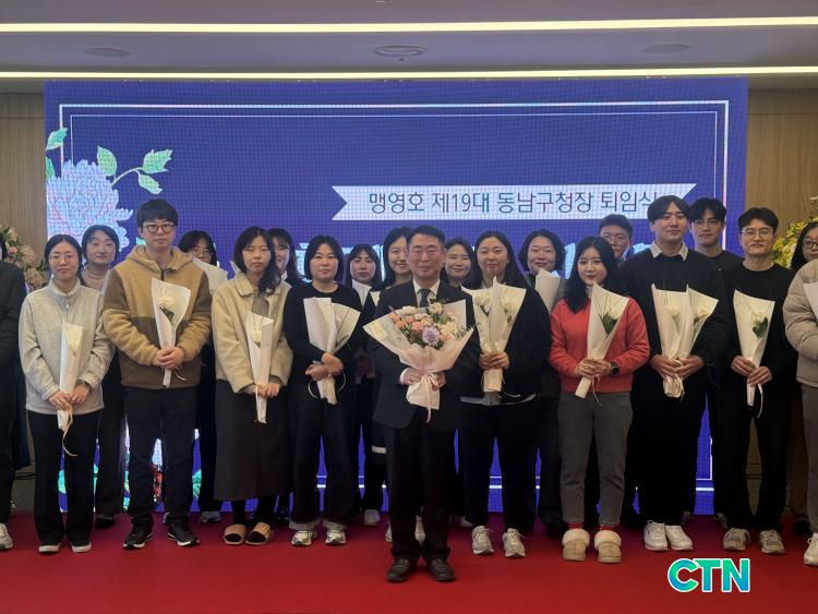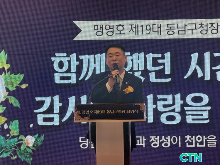 ¸Í¿µÈ£ õ¾È½Ã µ¿³²±¸Ã»ÀåÀÌ 29ÀÏ ¿¸° ÅðÀÓ½ÄÀ» ¸¶Ä¡°í ±â³ä»çÁøÀ» Âï°í ÀÖ´Ù.