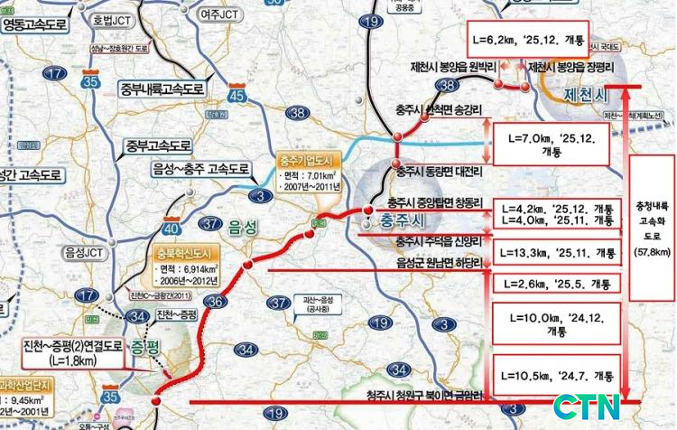 | ÃæÃ»³»·ú°í¼Óȵµ·Î(57.8§°) 3~4°ø±¸ ÀÜ¿©±¸°£ÀÎ 'ÃæÁֽà ´ë¼Ò¿ø¸é ¸¸Á¤¸®(½ÅÃ̱³Â÷·Î)'¿¡¼ 'Á¦Ãµ½Ã ºÀ¾çÀ¾ ÀåÆò¸®(ºÀ¾ç¿ª ¾Õ ±³Â÷·Î)'±îÁö 17.4§°¸¦ 30ÀÏ(È) 12½Ã¿¡ Ãß°¡ °³ÅëÇß´Ù. / ÃæÃ»³»·ú°í¼Óȵµ·Î À§Ä¡µµ |