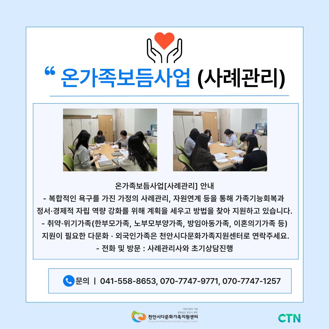 #õ¾È½Ã #õ¾È½Ã´Ù¹®È°¡Á·Áö¿ø¼¾ÅÍ #¿Â°¡Á·º¸µë»ç¾÷ #»ç·Ê°ü¸® #À±¿¬ÇѼ¾ÅÍÀå #´Ù¹®È°¡Á¤Áö¿ø #Áö¿ª»çȸ°øÇå #°¡Á·º¹Áö #°Çö¼ö±âÀÚ #CTN