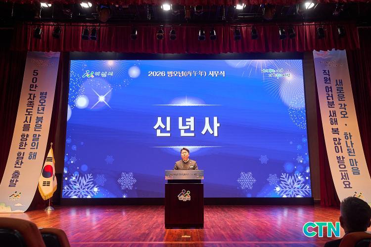¿À ½ÃÀåÀº À̳¯ ½Ãû ½Ã¹ÎȦ¿¡¼ ¿¸° 2026³â º´¿À³â(ܰçíÒ´) ½Ã¹«½Ä¿¡¼ ½Å³â»ç¸¦ ÅëÇØ À̰°ÀÌ ¹àÈ÷¸ç, 50¸¸ ÀÚÁ·µµ½Ã ½ÇÇöÀ» À§ÇÑ 6´ë ½ÃÁ¤ ¹æÇâÀ» Á¦½ÃÇß´Ù.