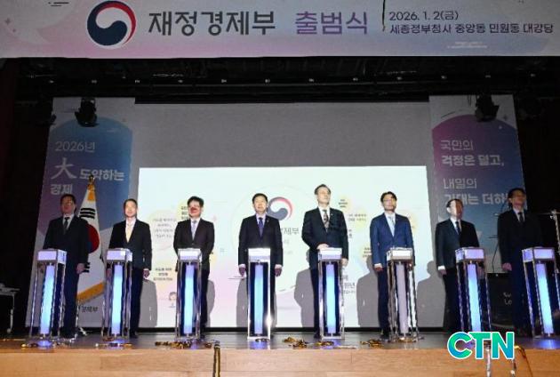 [ÀçÁ¤°æÁ¦ºÎ/CTN]°¡¿äÁø ±âÀÚ= ÀçÁ¤°æÁ¦ºÎ(Àå°ü: ±¸À±Ã¶)´Â 1¿ù 2ÀÏ Á¤ºÎ¼¼Á¾Ã»»ç Áß¾Óµ¿¿¡¼ °ø½Ä Ãâ¹ü½ÄÀ» °³ÃÖÇϰí, Çѱ¹ °æÁ¦ ´ëµµ¾àÀ» ÇâÇÑ ÈûÂù ¹ß°ÉÀ½À» ³»µðµ±´Ù.