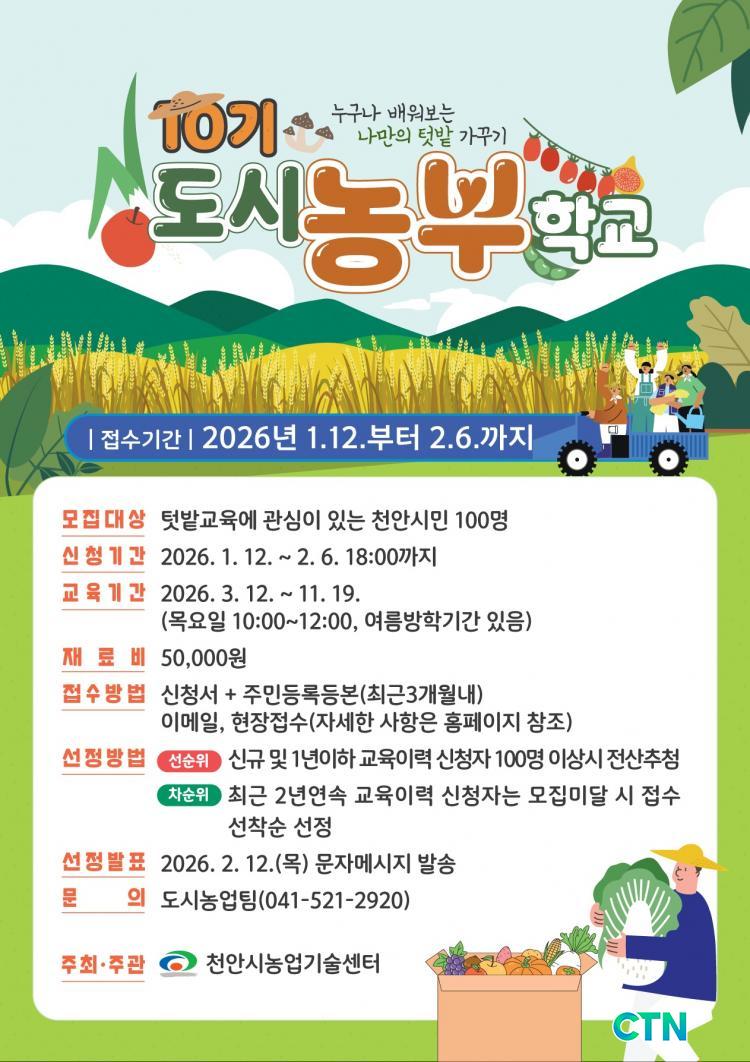 [õ¾È/CTN]°Çö¼ö ±âÀÚ = õ¾È½Ã³ó¾÷±â¼ú¼¾ÅͰ¡ µµ½É ¼Ó¿¡¼ ³óÃÌÀÇ Á¤Ã븦 ´À³¢¸ç ³ó¾÷ÀÇ °¡Ä¡¸¦ ü°èÀûÀ¸·Î ¹è¿ì±æ Èñ¸ÁÇÏ´Â ½Ã¹ÎµéÀ» À§ÇØ ¡®Á¦10±â õ¾Èµµ½Ã³óºÎÇб³¡¯ ±³À°»ýÀ» ¸ðÁýÇÑ´Ù. ¼¾ÅÍ´Â 8ÀÏ, ¿À´Â 12ÀϺÎÅÍ ³»´Þ 6ÀϱîÁö ¾à ÇÑ ´Þ°£ Âü°¡ ½ÅûÀ» ¹Þ´Â´Ù°í ¹àÈ÷¸ç µµ½Ã¹ÎµéÀÇ ¿©°¡ ¼±¿ë°ú °Ç°ÇÑ ½Ä¹®È È®»êÀ» À§ÇÑ º»°ÝÀûÀÎ Áغñ¿¡ µ¹ÀÔÇß´Ù.