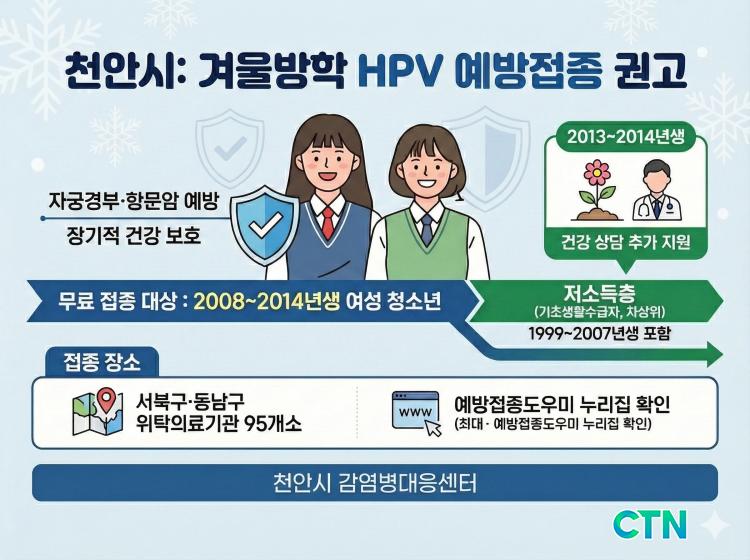 ¡°¿©¼º û¼Ò³âÀÇ °Ç°ÇÑ ¼ºÀåÀ» À§ÇØ¡±... õ¾È½Ã, HPV ¹«·á ¿¹¹æÁ¢Á¾ ±Ç°í