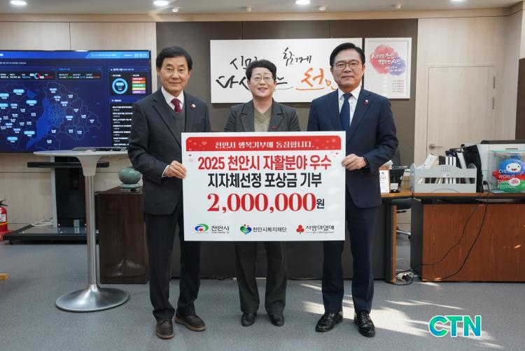 [õ¾È/CTN]°Çö¼ö ±âÀÚ = õ¾È½Ã °ø¹«¿øµéÀÌ ÇàÁ¤ ¼º°ú·Î ¹ÞÀº Æ÷»ó±ÝÀ» ´Ù½Ã ½Ã¹ÎÀ» À§ÇÑ ³ª´®À¸·Î ȯ¿øÇϸç Áö¿ª »çȸ¿¡ ±Í°¨ÀÌ µÇ°í ÀÖ´Ù. ½Ã´Â º¸°Çº¹ÁöºÎ ÁÖ°ü ¡®2025³â ÀÚȰ ºÐ¾ß ¿ì¼öÁöÀÚü¡¯ ¼±Á¤¿¡ µû¶ó ¹ÞÀº Æ÷»ó±Ý 200¸¸ ¿ø Àü¾×À» õ¾È½Ãº¹ÁöÀç´Ü¿¡ ±âºÎÇß´Ù°í 14ÀÏ ¹àÇû´Ù.