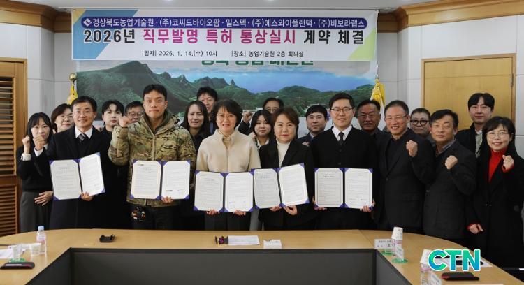 [°æºÏ/CTN]À̼öÇö ±âÀÚ = °æ»óºÏµµ³ó¾÷±â¼ú¿øÀº ÀÚü °³¹ßÇÑ Á÷¹«¹ß¸í ƯÇãÀÇ »ê¾÷ȸ¦ À§ÇØ 14ÀÏ ±â¼úÀÌÀü ´ë»ó ¾÷ü °ü°èÀÚµéÀÌ Âü¼®ÇÑ °¡¿îµ¥ ÃÑ 5°ÇÀÇ Á÷¹«¹ß¸í ƯÇã Åë»ó ½Ç½Ã °è¾àÀ» ü°áÇß´Ù.