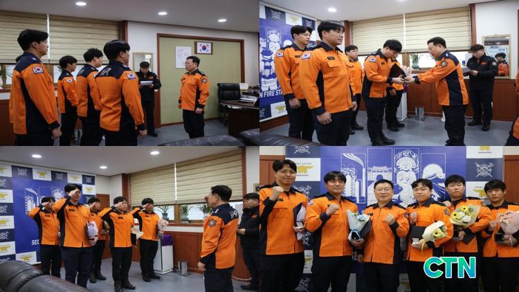 [¼»ê/CTN]°¡±ÝÇö ±âÀÚ = ¼»ê¼Ò¹æ¼(¼Àå ÃÖÀåÀÏ)´Â ±Þ¼º ³úÁ¹Áß ¹× ÁßÁõ¿Ü»óȯÀÚ ¹ß»ý ÇöÀå¿¡¼ ½Å¼ÓÇÑ È¯ÀÚ Æò°¡ ¹× º´¿ø À̼ÛÀ» ÅëÇØ »ý¸íÀ» ÁöÄѳ½ ±¸±Þ´ë¿ø¿¡°Ô ºê·¹Àμ¼À̹ö(3¸í)¿Í Æ®¶ó¿ì¸¶¼¼À̹ö(2¸í)¸¦ ¼ö¿©Çß´Ù. À̹ø ¼ö¿©½ÄÀº ±¸±Þ ÇöÀå¿¡¼ Àü¹®ÀûÀÎ ÀÀ±Þóġ¿Í ÈÄÀ¯Áõ ÃÖ¼ÒÈ¿¡ ±â¿©ÇÑ °ø·Î¸¦ ÀÎÁ¤Çϰí, ±¸±Þ´ë¿øÀÇ ÀÚ±à½ÉÀ» ³ôÀ̱â À§ÇØ ¸¶·ÃµÆ´Ù.