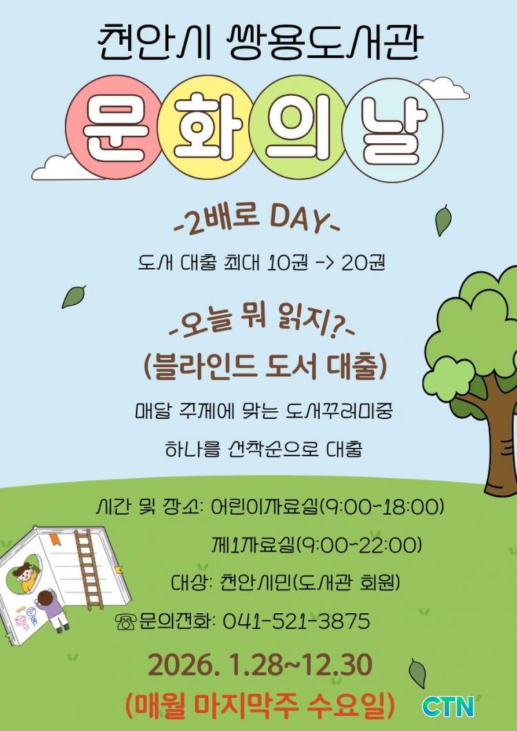 ¿ÃÇØ ½Ö¿ëµµ¼°üÀÌ ÁغñÇÑ ¡®¹®È°¡ ÀÖ´Â ³¯¡¯ÀÇ ÇÙ½ÉÀº ½Ã¹ÎµéÀÌ Æò¼Òº¸´Ù ´õ ±íÀÌ ÀÖ°Ô Ã¥°ú ¸¸³¯ ¼ö ÀÖµµ·Ï µ½´Â ½ÇÁúÀûÀÎ ÇýÅðú »ö´Ù¸¥ Àç¹Ì´Ù. ÁÖ¿ä ÇÁ·Î±×·¥À¸·Î´Â Æò¼Ò ´ëÃ⠱ǼöÀÇ µÎ ¹èÀÎ **1Àδç 20±Ç±îÁö ´ëÃâÀÌ °¡´ÉÇÑ ¡®2¹è·Î Day¡¯**¸¦ ¿î¿µÇÏ¿© ½Ã¹ÎµéÀÌ ÇÑ ´Þ°£ ³Ë³ËÇÏ°Ô µ¶¼¸¦ Áñ±æ ¼ö Àִ ȯ°æÀ» Á¦°øÇÑ´Ù.