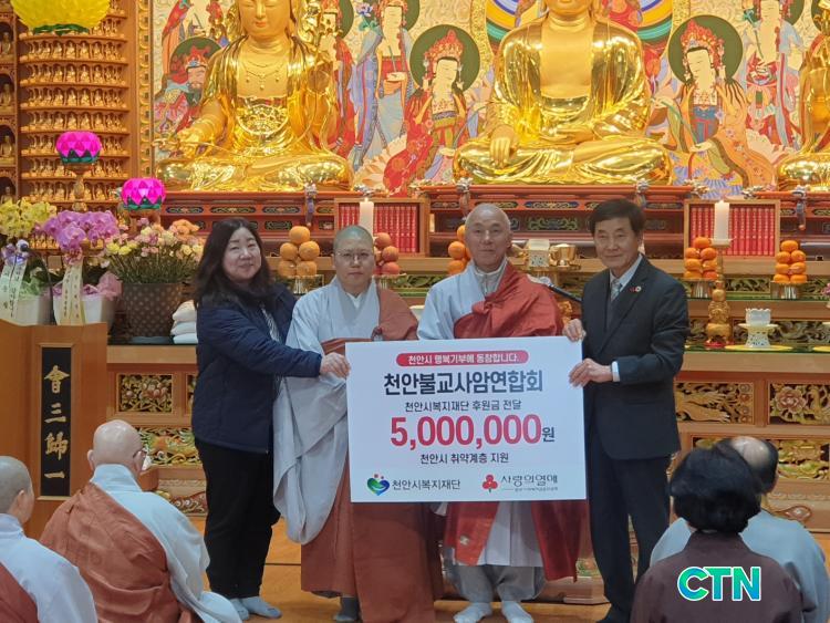 [õ¾È/CTN] °Çö¼ö ±âÀÚ = õ¾È ºÒ±³°è°¡ ¸Å¼¿î °Ü¿ï ÃßÀ§¸¦ ³ìÀÌ´Â ºÎó´ÔÀÇ ÀÚºñ¸¦ ½ÇõÇÏ¸ç ¼Ò¿ÜµÈ ÀÌ¿ôµé¿¡°Ô Èñ¸ÁÀÇ µîºÒÀ» ¹àÈ÷°í ÀÖ´Ù. (Àç)õ¾È½Ãº¹ÁöÀç´ÜÀº Áö³ 17ÀÏ Ãµ¾ÈºÒ±³»ç¾Ï¿¬ÇÕȸ°¡ õ¾È¸¸¼ö»ç¿¡¼ Ãë¾à°èÃþ Áö¿øÀ» À§ÇÑ ÈÄ¿ø±Ý 500¸¸ ¿øÀ» ±âŹÇß´Ù°í ¹àÇû´Ù. À̹ø ±âŹÀº Áö³ 2016³âºÎÅÍ 10³â °¡±î¿î ¼¼¿ù µ¿¾È ÇѰᰰÀÌ À̾îÁ® ¿Â ¿¬ÇÕȸÀÇ ³ª´® Á¤½ÅÀÌ ºú¾î³½ ¼ÒÁßÇÑ °á½ÇÀÌ´Ù.