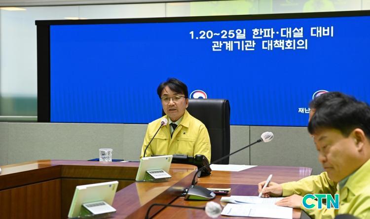 [Çà¾ÈºÎ/CTN]°¡¿äÁø ±âÀÚ= ÇàÁ¤¾ÈÀüºÎ(Àå°ü À±È£Áß)´Â 1¿ù 20ÀϺÎÅÍ 25ÀϱîÁö Àü±¹ ´ëºÎºÐ Áö¿ª¿¡ ÇÑÆÄ°¡ À̾îÁú °ÍÀ¸·Î Àü¸ÁµÊ¿¡ µû¶ó ±è±¤¿ë Àç³¾ÈÀü°ü¸®º»ºÎÀå ÁÖÀç·Î °ü°è±â°ü ´ëåȸÀǸ¦ °³ÃÖÇϰí, ¿À´Ã(19ÀÏ) 17½ÃºÎ·Î ÇÑÆÄ Àç³ À§±â°æº¸ ¼öÁØÀ» '°ü½É'¿¡¼ 'ÁÖÀÇ' ´Ü°è·Î °Ý»óÇÑ´Ù°í ¹àÇû´Ù.