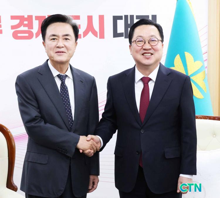 ÀÌÀå¿ì ´ëÀü½ÃÀå°ú ±èÅÂÈì Ãæ³²Áö»ç´Â Áö³ 21ÀÏ ´ëÀü½Ãû¿¡¼ ȸµ¿À» °®°í Á¤ºÎÀÇ ÇàÁ¤ÅëÇÕ Áö¿ø°èȹ¿¡ ´ëÇÑ °øµ¿ ÀÔÀåÀ» ¹ßÇ¥Çß´Ù. µÎ ´ÜüÀåÀº ¡°Á¤ºÎ°¡ Á¦½ÃÇÑ ¹æ¾ÈÀº ¼±¾ðÀûÀÌ°í ±¸Ã¼¼ºÀÌ ºÎÁ·ÇÏ´Ù¡±¸ç ¡°Áö¹æÀÇ ÀÚÀ²¼º°ú Ã¥ÀÓÀ» °ÈÇÏ´Â ¹æÇâÀÌ ¾Æ´Ñ Áß¾Ó ÅëÁ¦ ±¸Á¶¸¦ À¯ÁöÇÑ Ã¤ Çü½Ä¸¸ ¹Ù²Û ´ëÃ¥¡±À̶ó°í ¹àÇû´Ù.