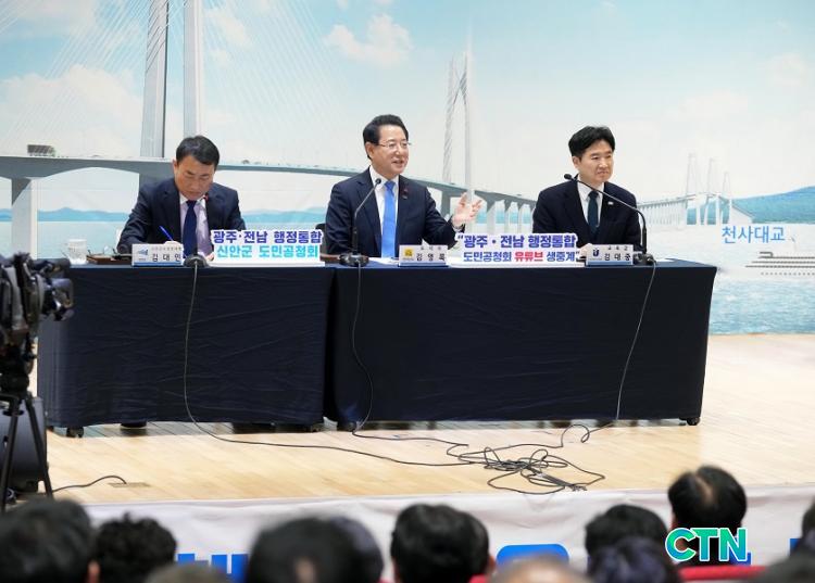 [Àü³²/CTN]Çϼº¸Å ±âÀÚ = Àü¶ó³²µµ´Â 21ÀÏ ±¤ÁÖ.Àü³² ÇàÁ¤ÅëÇÕÀ» ÁÖÁ¦·Î ½Å¾È±º°ú ¸ñÆ÷½Ã¿¡¼ µµ¹Î°øÃ»È¸¸¦ ÀÕµû¶ó ¿°í ¼³²±Ç Áö¿ªº° Ư¼º°ú Çö¾È°úÁ¦¸¦ Áß½ÉÀ¸·Î µµ¹Îµé°ú ¼ÒÅëÇÏ´Â ½Ã°£À» °¡Á³´Ù.