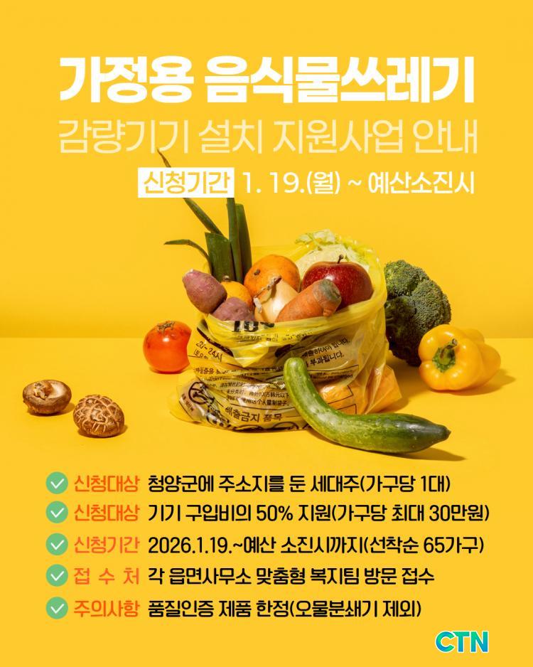 [û¾ç/CTN]ÇѼºÁø ±âÀÚ = û¾ç±º(±º¼ö ±èµ·°ï)ÀÌ °¡Á¤ ³» À½½Ä¹°¾²·¹±â ¹ß»ýÀ» ÁÙÀ̰í ÄèÀûÇÑ ÁÖ¹æ ȯ°æÀ» Á¶¼ºÇϱâ À§ÇØ °¡Á¤¿ë À½½Ä¹°¾²·¹±â °¨·®±â±â ¼³Ä¡ Áö¿ø»ç¾÷ È«º¸¿¡ ³ª¼¹´Ù.